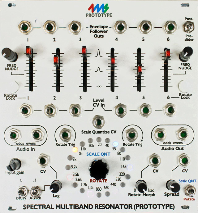 Pictured below: (from left to right) The original white panel prototype for the Spectral Multiband Resonator, A stack of Bend Matrixes, 4ms's first digital meta-instrument, and Dan Green playing with a video screen.