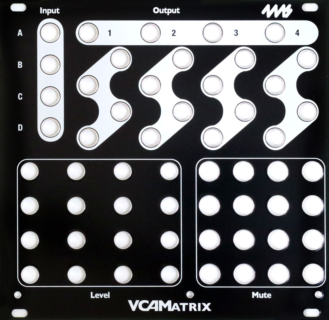 DIY replacement faceplate for the VCA Matrix. Black background with white artwork.