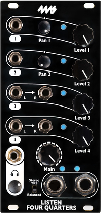 DIY replacement faceplate for the Listen 4Q. Black background with white artwork.