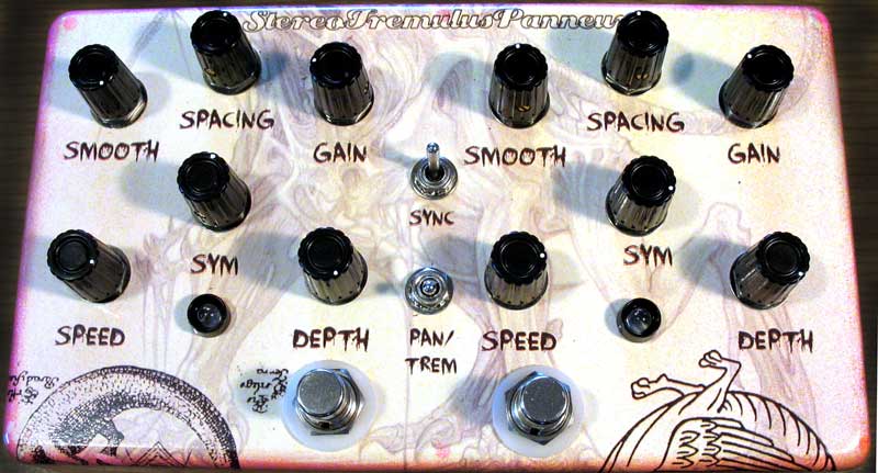 Trem/pan switch: selects stereo panning (bouncing), or stereo tremolo (rolling)